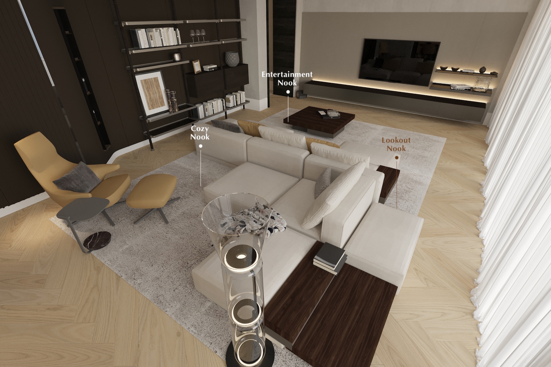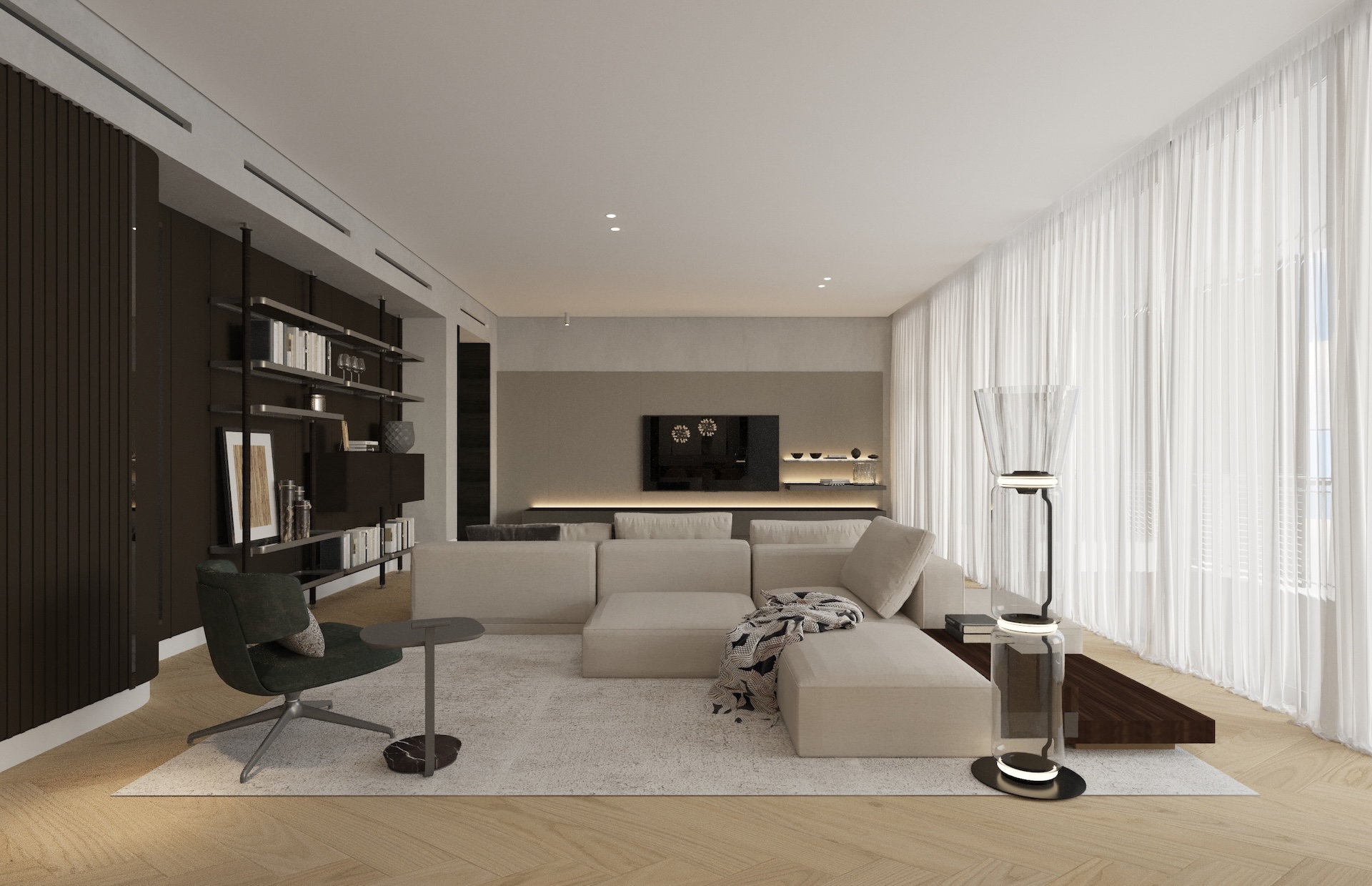Embracing a dynamic lifestyle, the design features versatile loose furniture adorned with sophisticated soft finishes and materials.