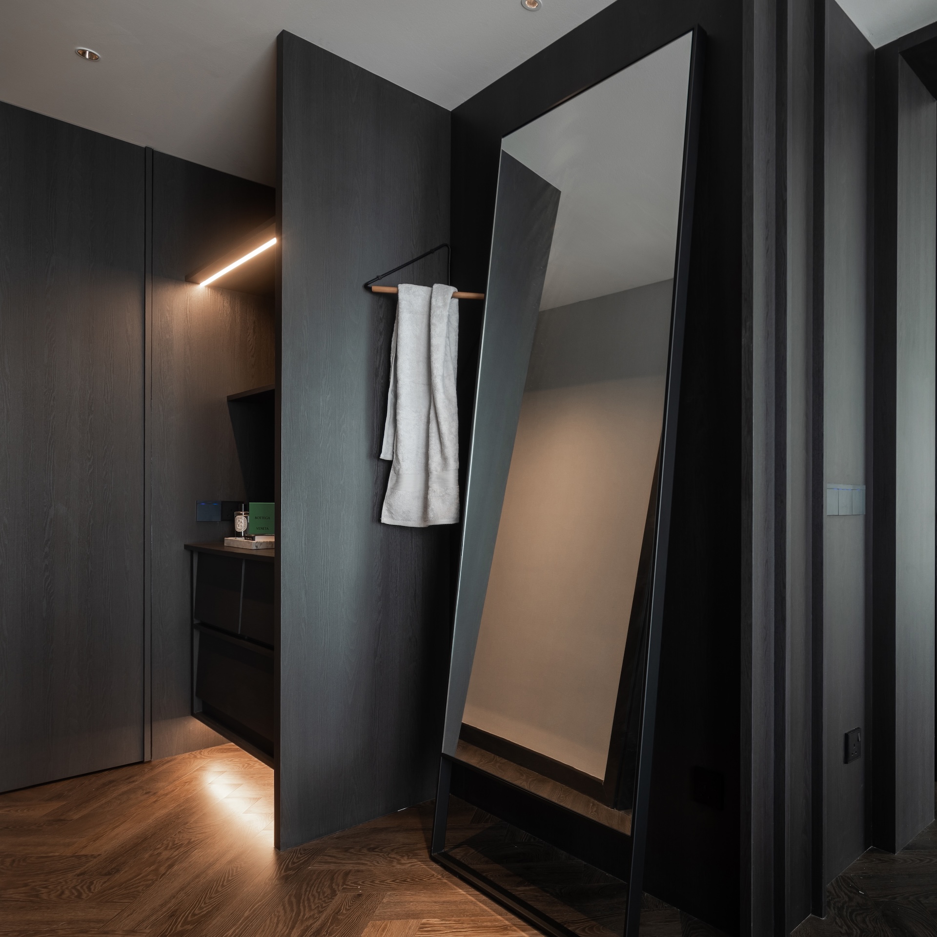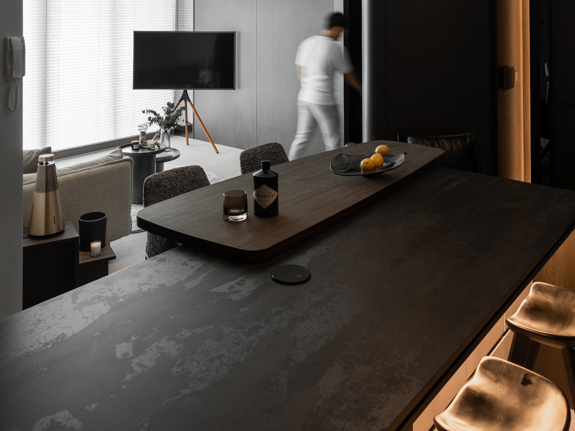 The configuration of the apartment was reimagined to break through the rigidity of the existing structure, a fine tweak was done to optimising the fluidity of the space, that enhances the daily living experience.