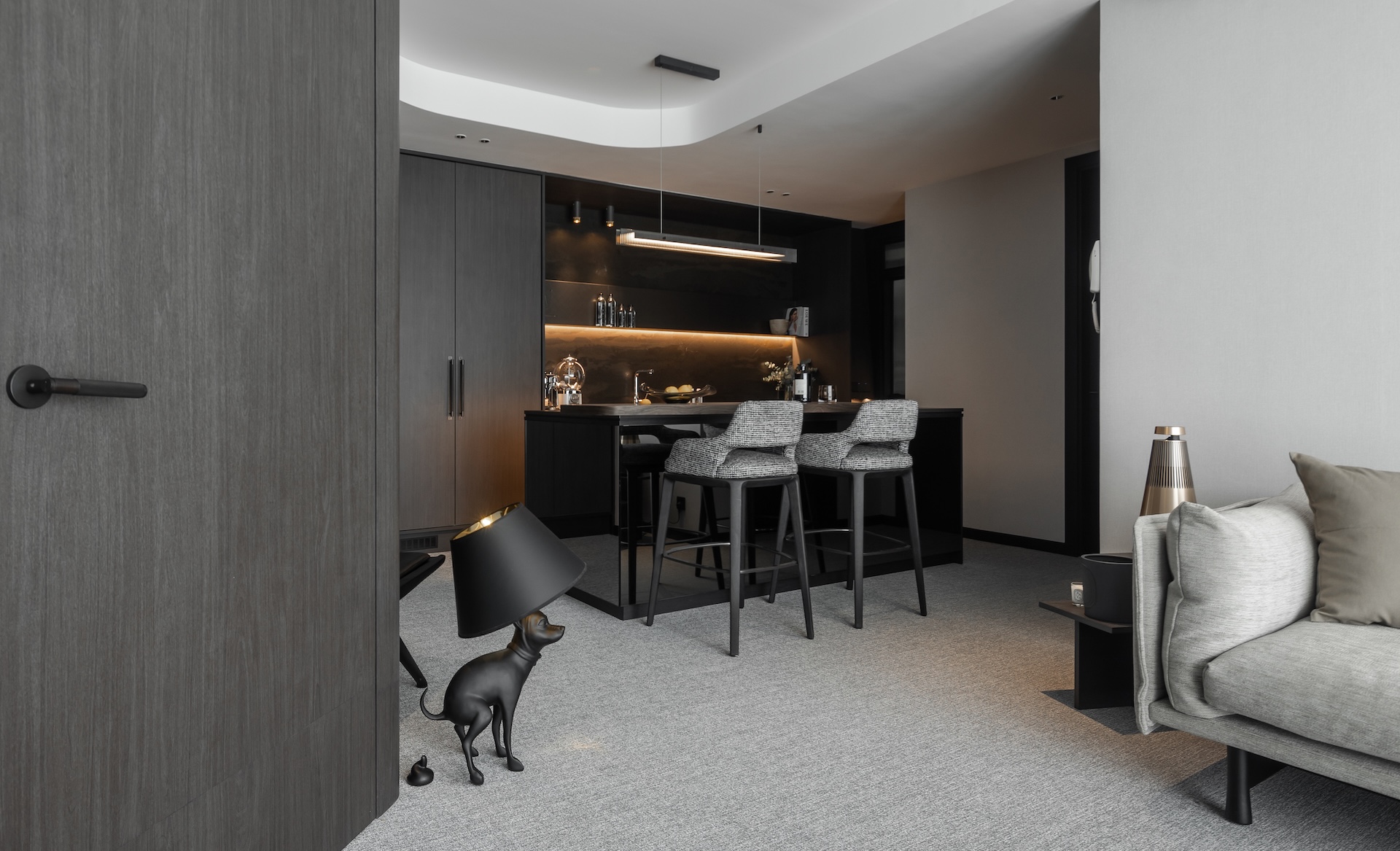 A monochromatic colour scheme was chosen to give a mystique, elegant, and luxurious feel, and this colour palette offers greater flexibility in ambience and décor.